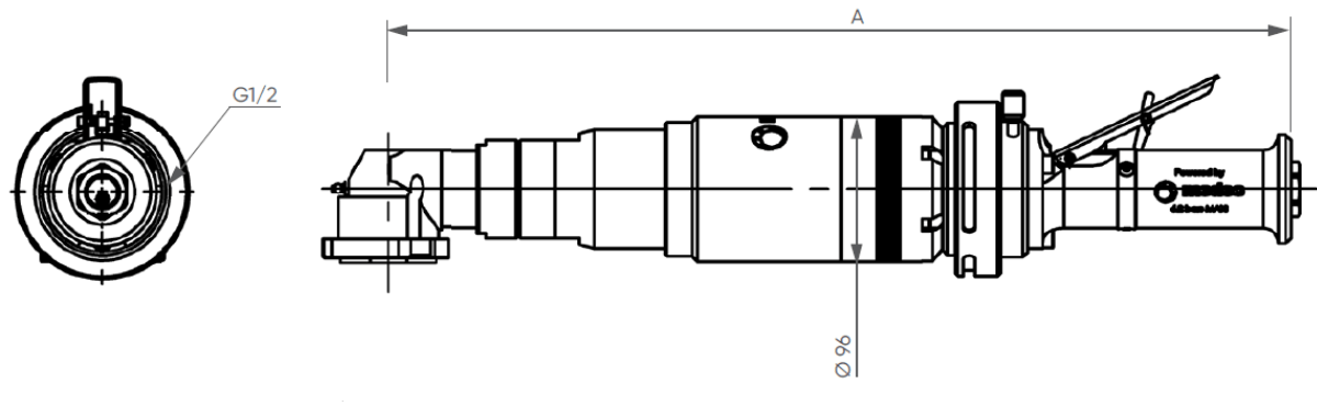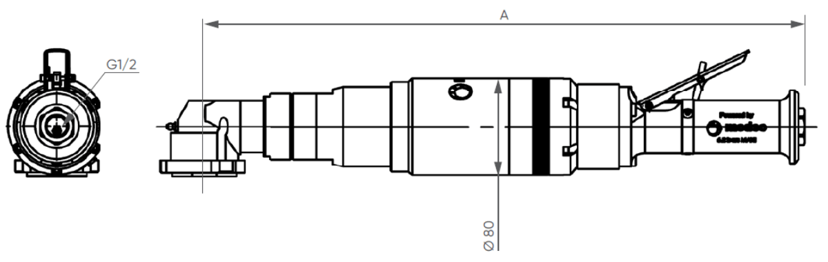 | Référence | Rapport de réduction | Pression (Bars) | Vitesse (tr/min) | Couple (Nm) | Puissance max (W) | Consommation d’air (Nl/min) | Dimensions | |||||