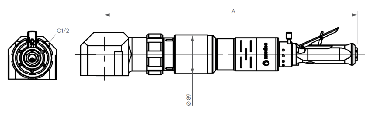 | Référence | Rapport de réduction | Pression (Bars) | Vitesse (tr/min) | Couple (Nm) | Puissance max (W) | Consommation d’air (Nl/min) | Dimensions | |||||