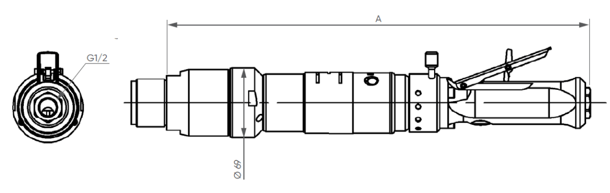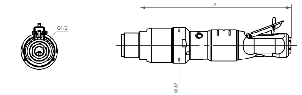 | Référence | Rapport de réduction | Pression (Bars) | Vitesse (tr/min) | Couple (Nm) | Puissance max (W) | Consommation d’air (Nl/min) | Dimensions | |||||