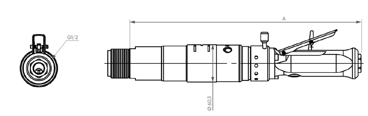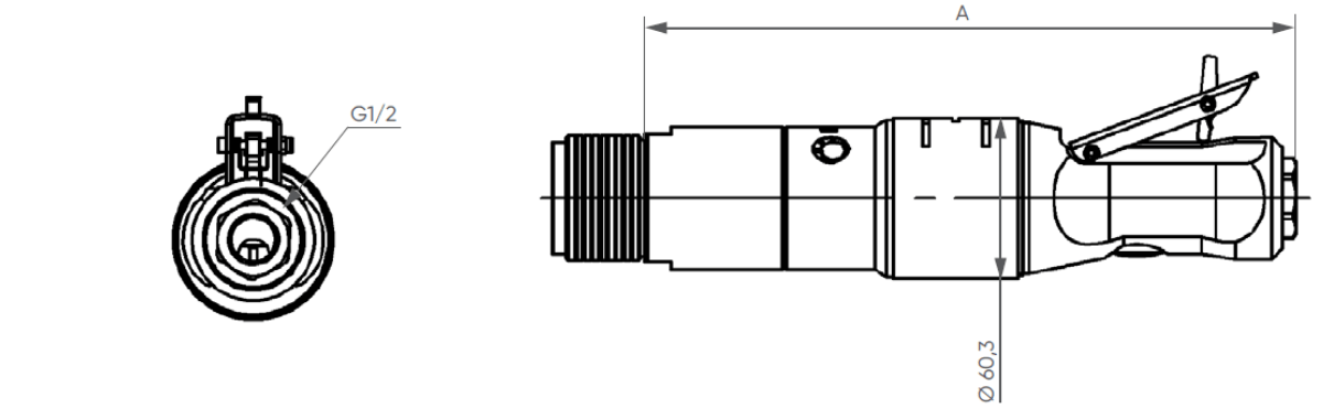 | Référence | Rapport de réduction | Pression (Bars) | Vitesse (tr/min) | Couple (Nm) | Puissance max (W) | Consommation d’air (Nl/min) | Dimensions | |||||