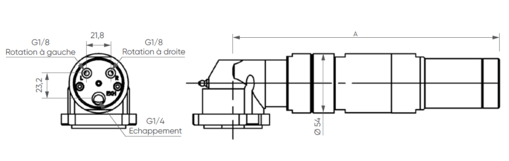 | Referencia | Relación de reducción | Presión (bares) | Velocidad (RPM) | Torque (Nm) | Potencia máxima (W) | Consumo de aire (Nl/min) | Dimensiones | |||||