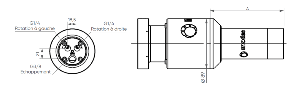 | Referencia | Relación de reducción | Presión (bares) | Velocidad (RPM) | Torque (Nm) | Potencia máxima (W) | Consumo de aire (Nl/min) | Dimensiones | |||||