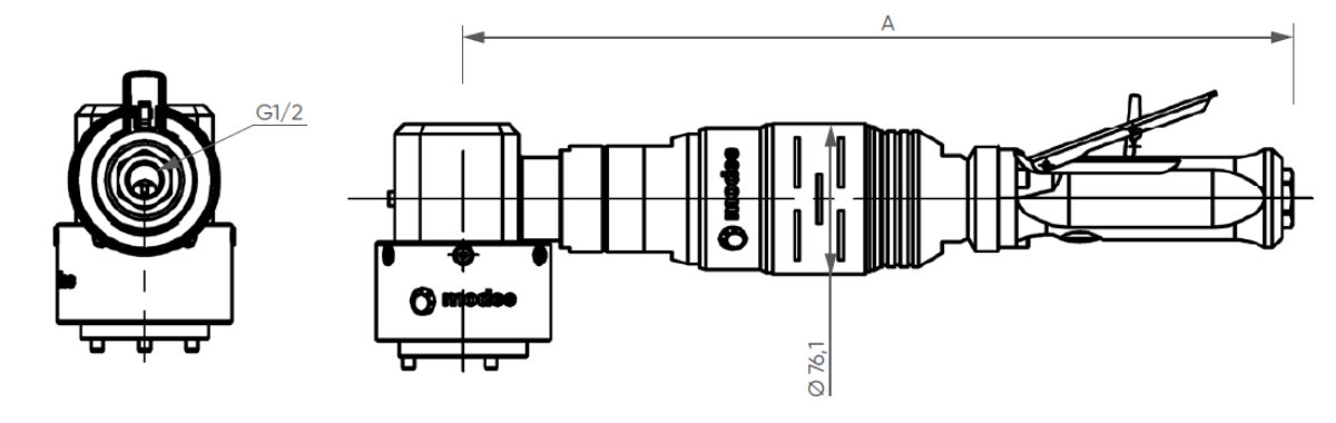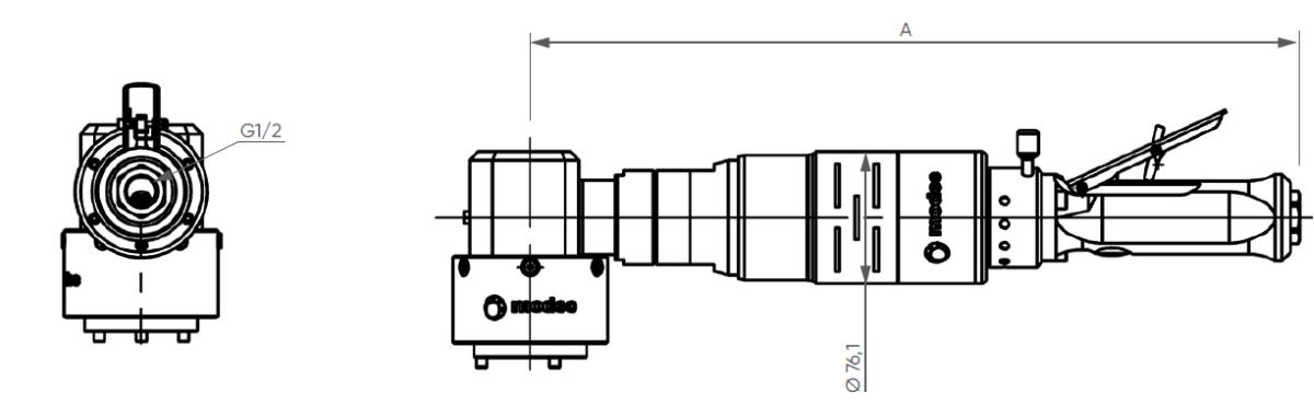 | Referencia | Relación de reducción | Presión (bares) | Velocidad (RPM) | Torque (Nm) | Potencia máxima (W) | Consumo de aire (Nl/min) | Dimensiones | |||||