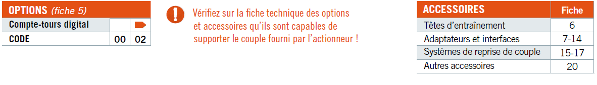 Vérifiez sur la fiche technique des options et accessoires qu'ils sont capables de supporter le couple fournis par l'actionneur.