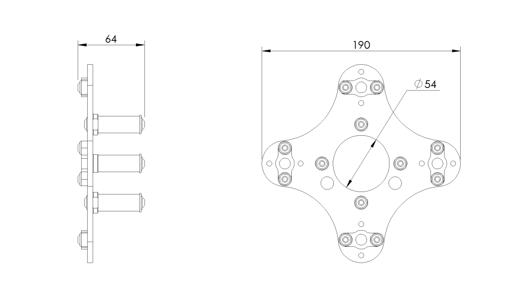 L’adaptateur à doigts fixes est destiné à des volants plats ou faiblement coniques (bras faisant un angle < 30° par rapport au plan du volant) et se compose de doigts amovibles à installer en fonction du nombre de bras du volant à manœuvrer.