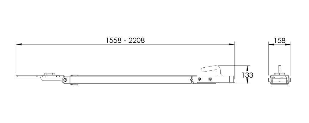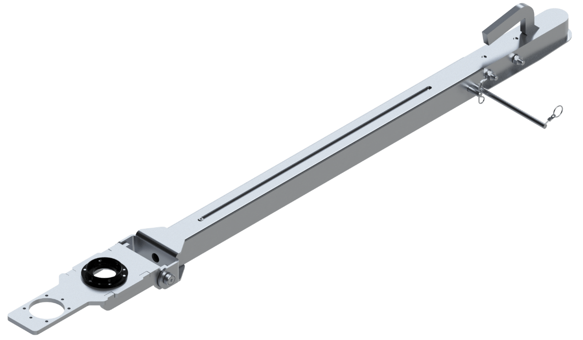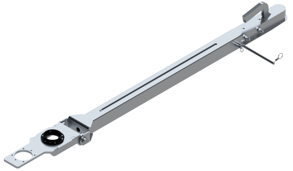 Ce bras métallique télescopique se place aisément entre l’attache remorque d’un véhicule et l’actionneur.